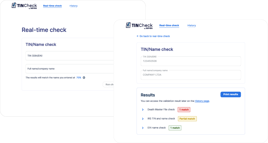 US taxpayer verification – IRS TIN and Name matching, EIN Name Lookup, IRS Exempt Organizations, Global Intermediary Identification Number (GIIN), Death Master File, USPS Address Validation